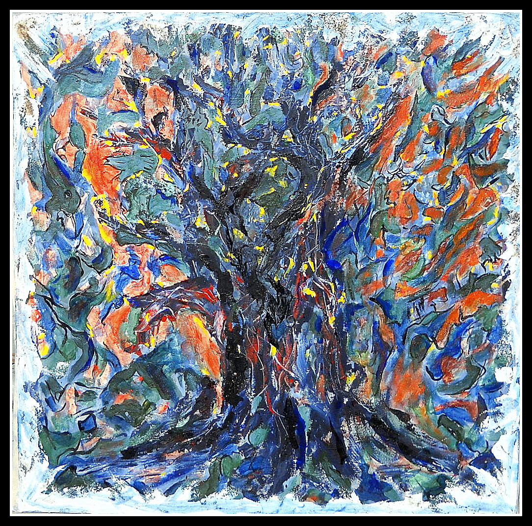 #390 Faerie Tree 32×32 Acrylic on canvas. This one got away from me. Lost what I’ve been working on–tonal contrast, too much of too much. Only good enough not to paint over. Rate this:Share this: Click to share on X (Opens in new window) X Click to share on Facebook (Opens in new window) Facebook More Click to share on Tumblr (Opens in new window) Tumblr Click to share on Pinterest (Opens in new window) Pinterest Like Loading... Related