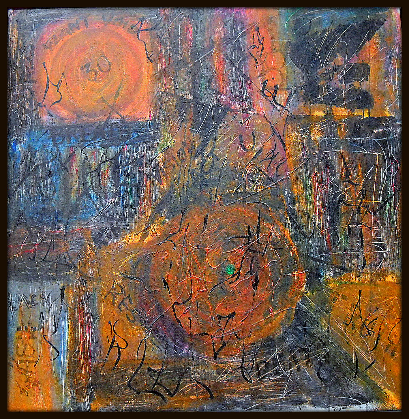 38″ x 38″ Acrylic on canvas. This one took me more time than usual. It’s a paint-over of #412, which I decided I didn’t like.