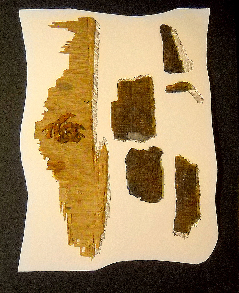 11 3/4″ x 9″ Fragments of wood, metal. Ink