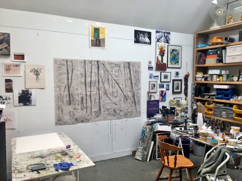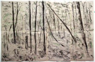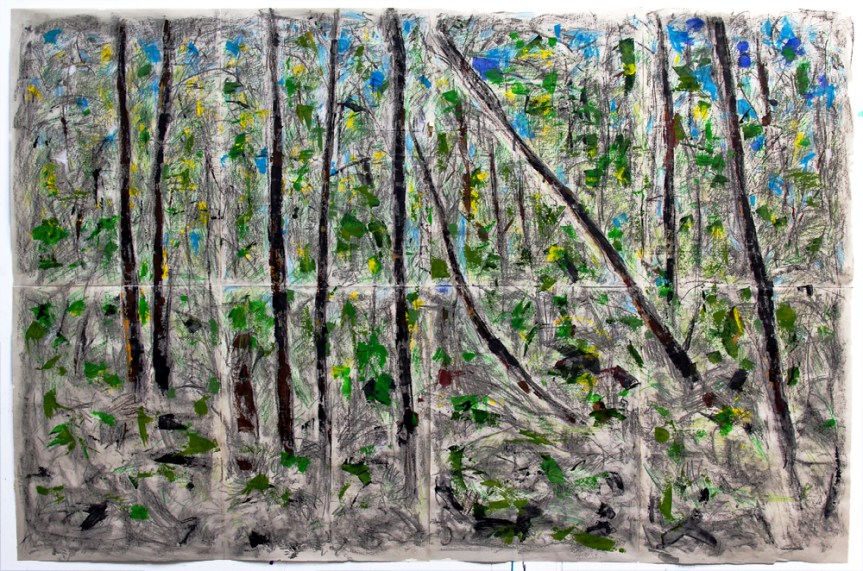 …to set up a number of sheets of newsprint on the studio wall and see where it took me with charcoal, crayon and paint.