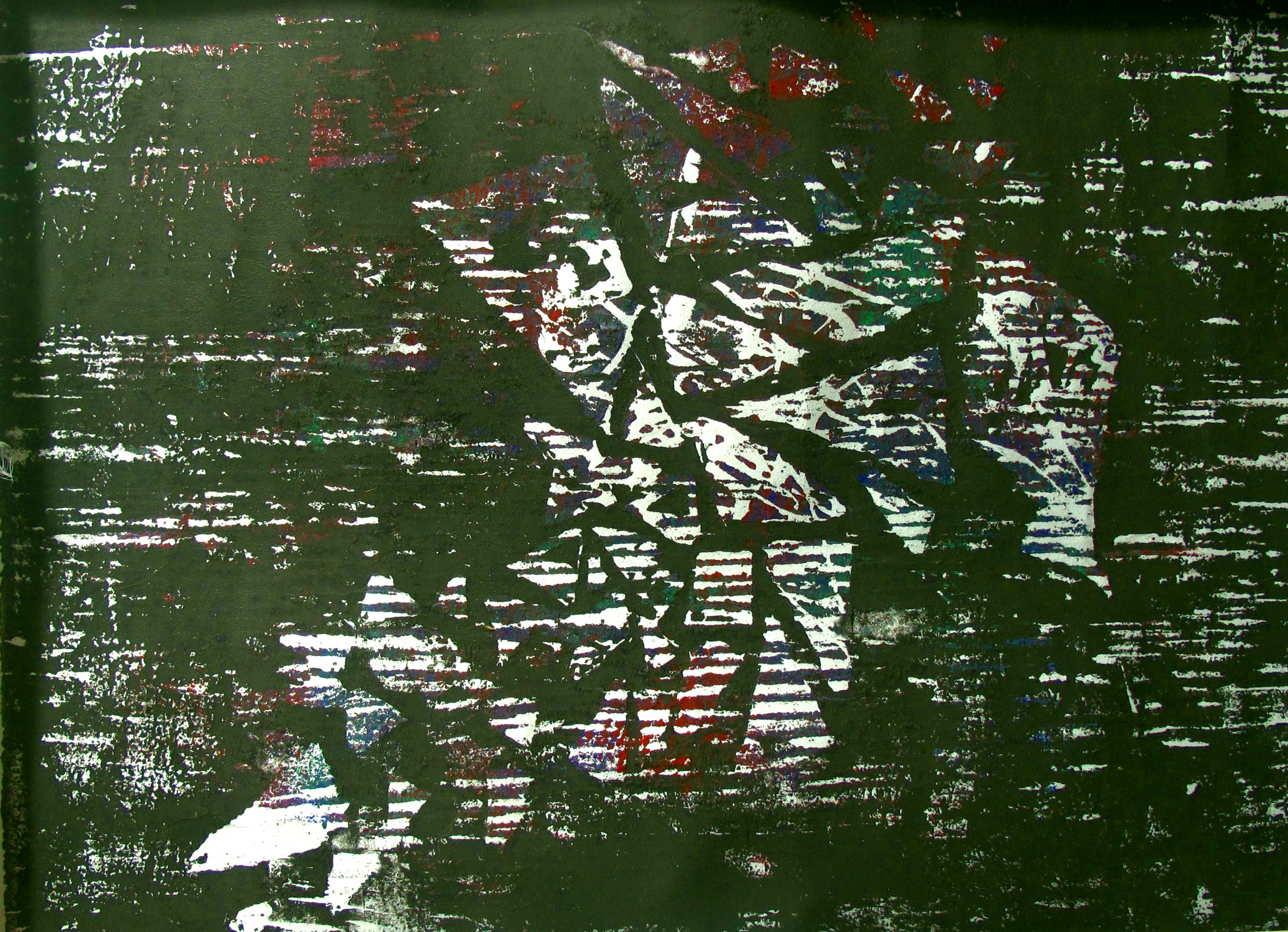 15×18″ Woodcut print (1 of 3) Found this, from 2015, when I was doing patterns from broken street pavement.