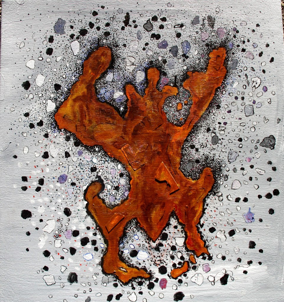 26×30 Acrylic on canvas, and oil over acrylic around the figure. Spill of paint on sidewalk.