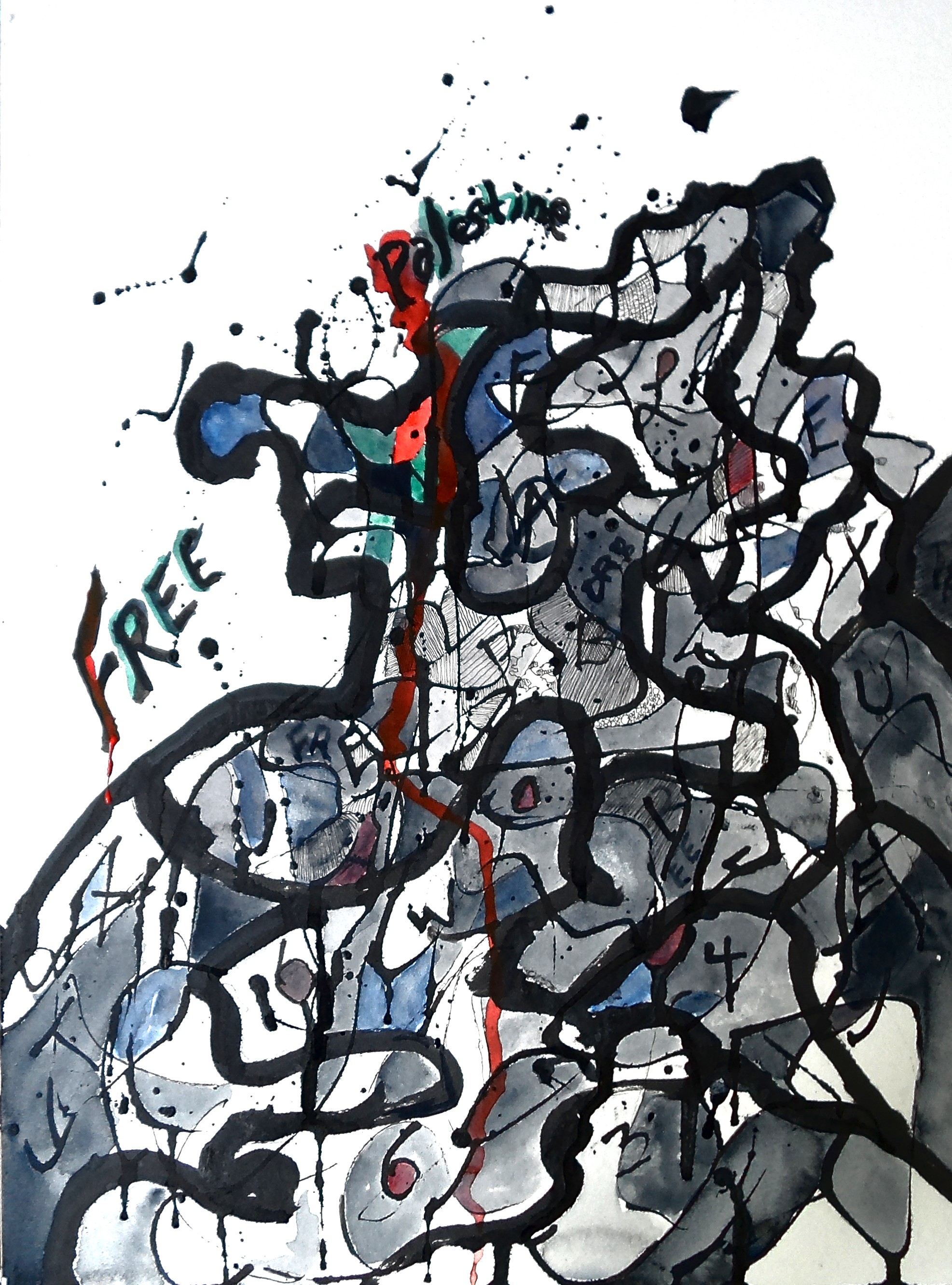 14”x20” Watercolor and Acrylic ink, Pen and Ink.