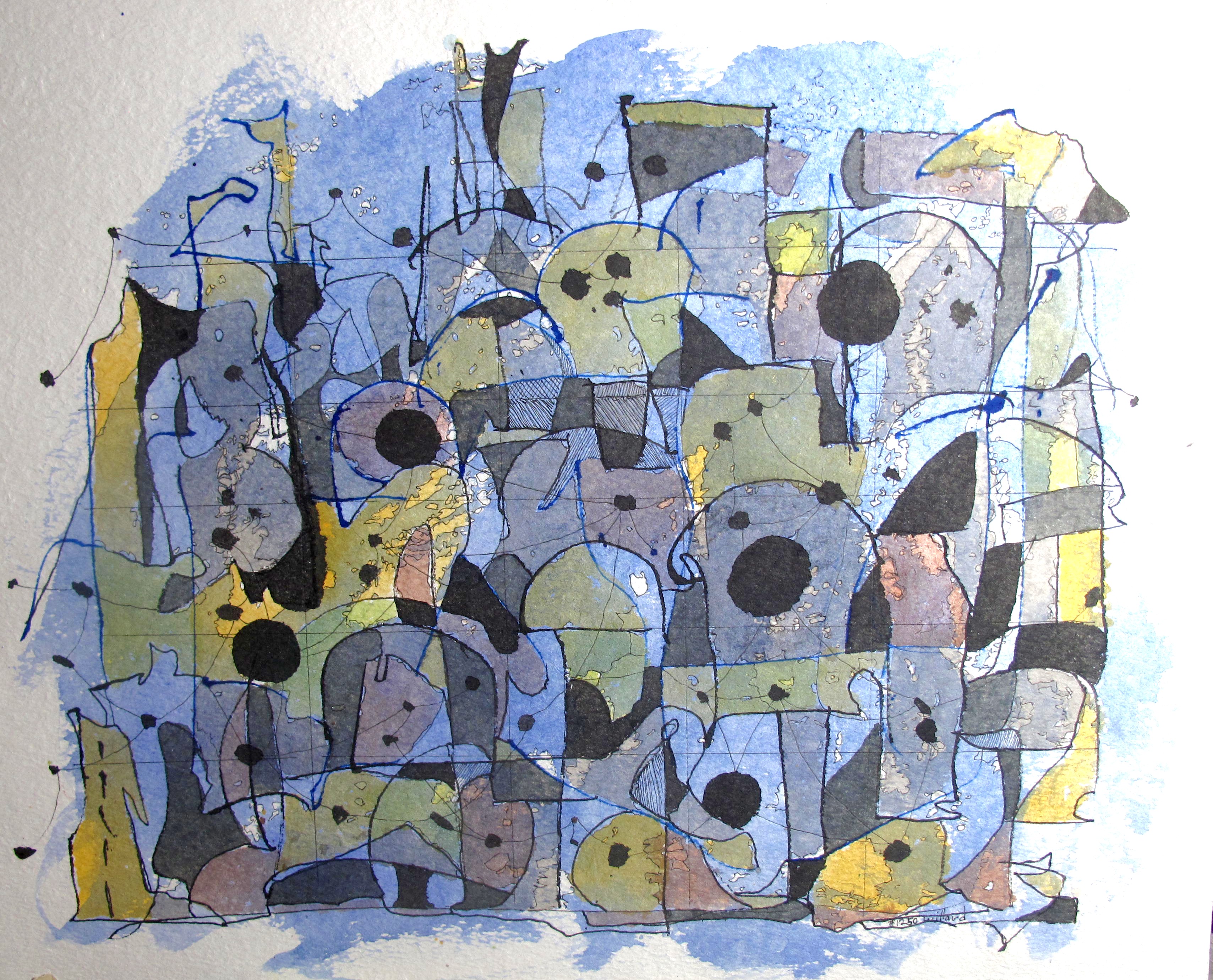 Watercolor over acrylic ink. India ink on 40x50cm — 15.75×19.75″ Schut Aquael 115lb Extra Raw Extra Rough papter