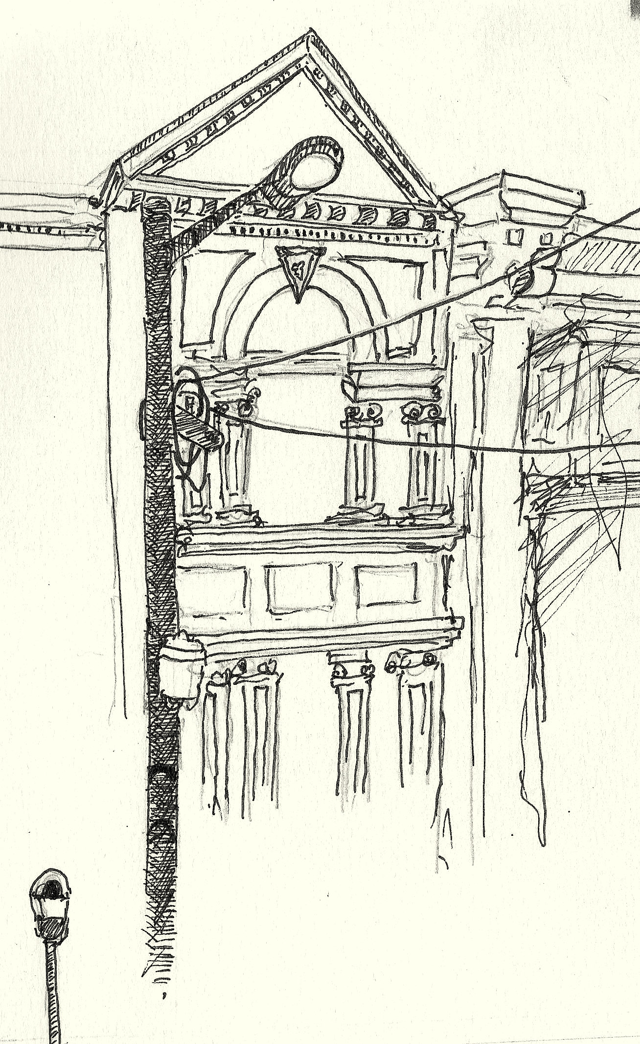 Street sketching is a new thing for me. I love how it brings my vision into focus–how I can lose myself for an hour or two in utter concentration. While I don’t think about more than what I’m doing while I work, I find that it stimulates so many questions, provokes my mind–no small part of what fascinates me, though some of those questions are troubling.