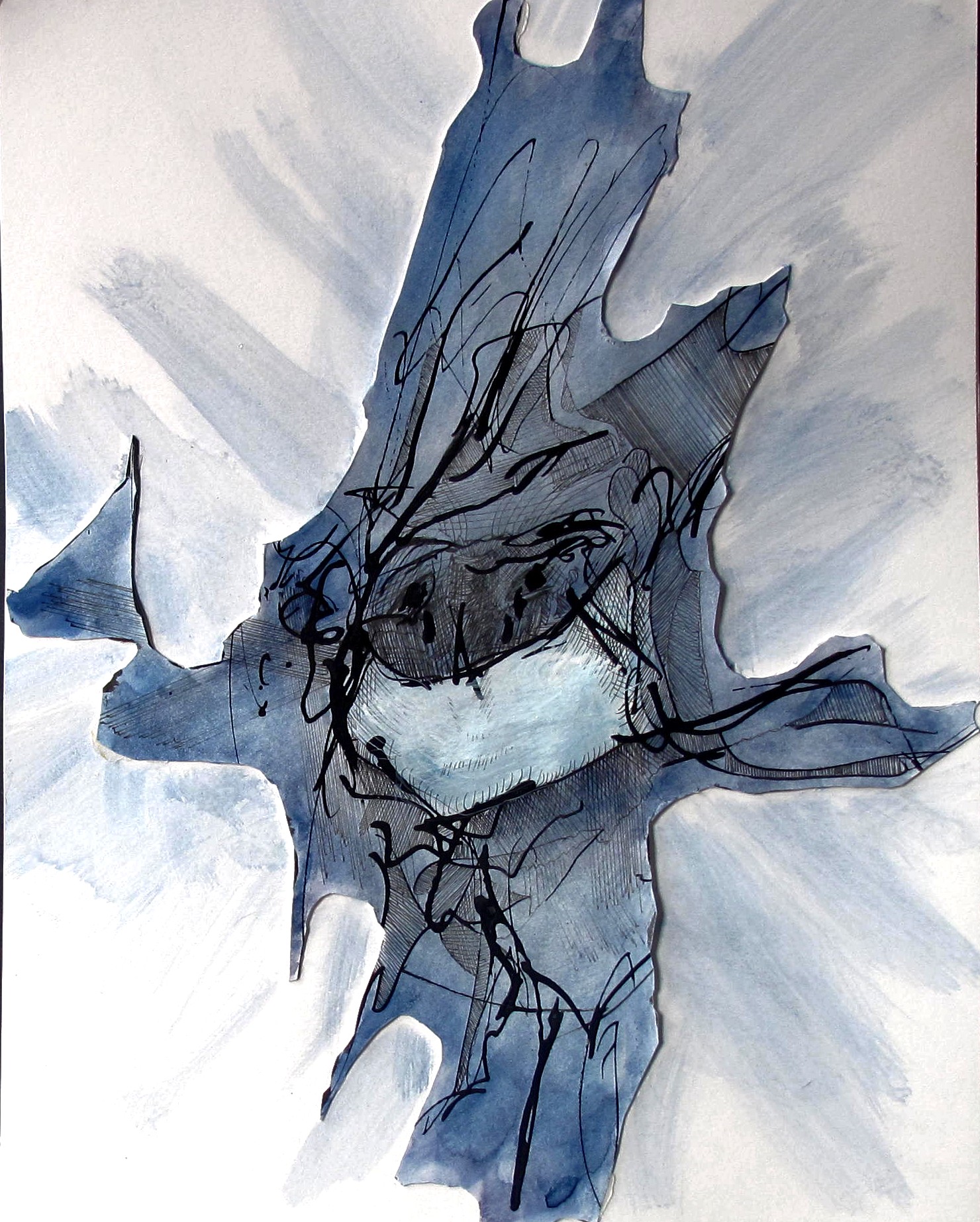 20″x27.5 Collage, Acrylic ink, watercolor, ink, mounted on stretched canvas.