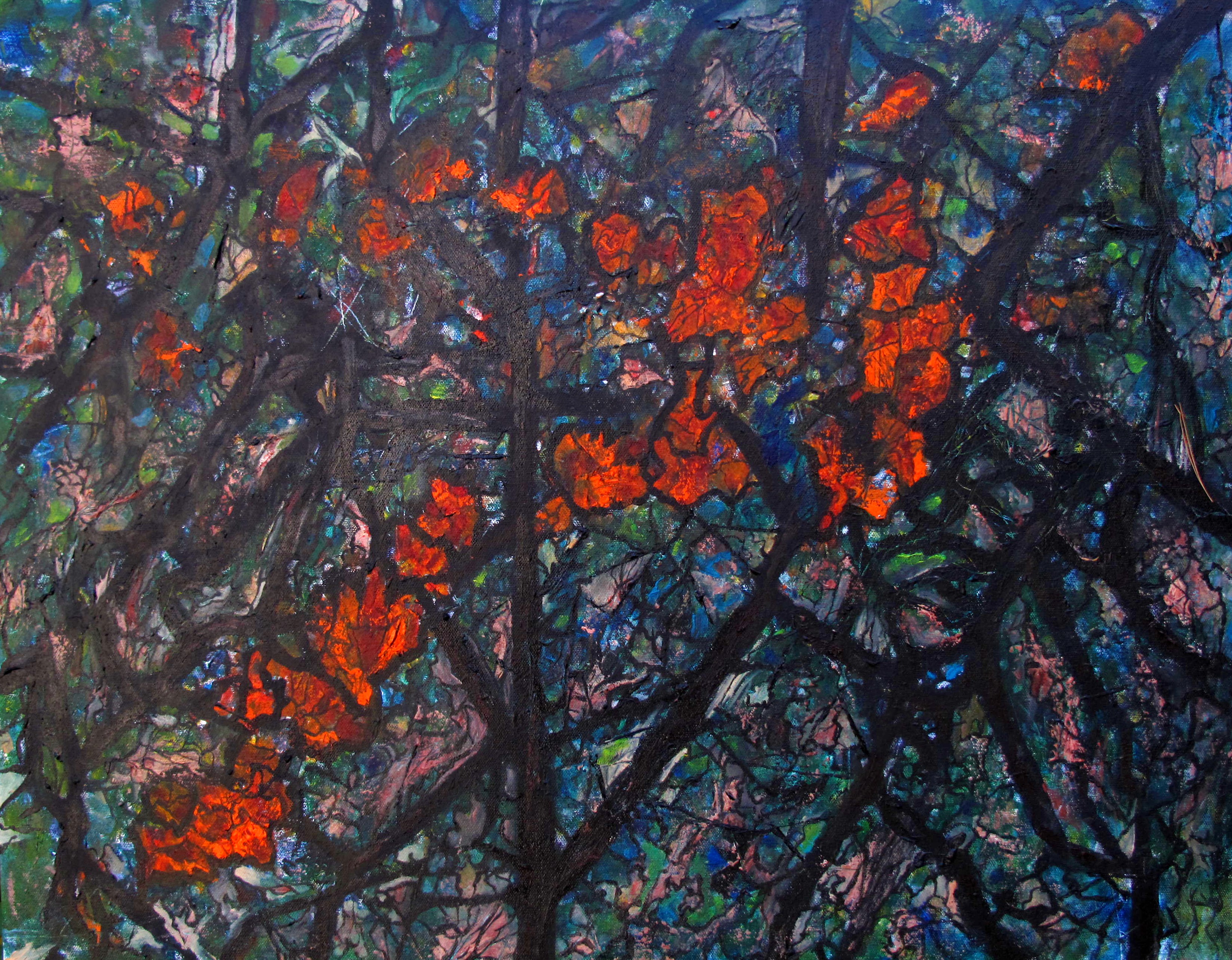 30×24 Oil on canvas. I scraped this off… liked it better. Some red spatters added.