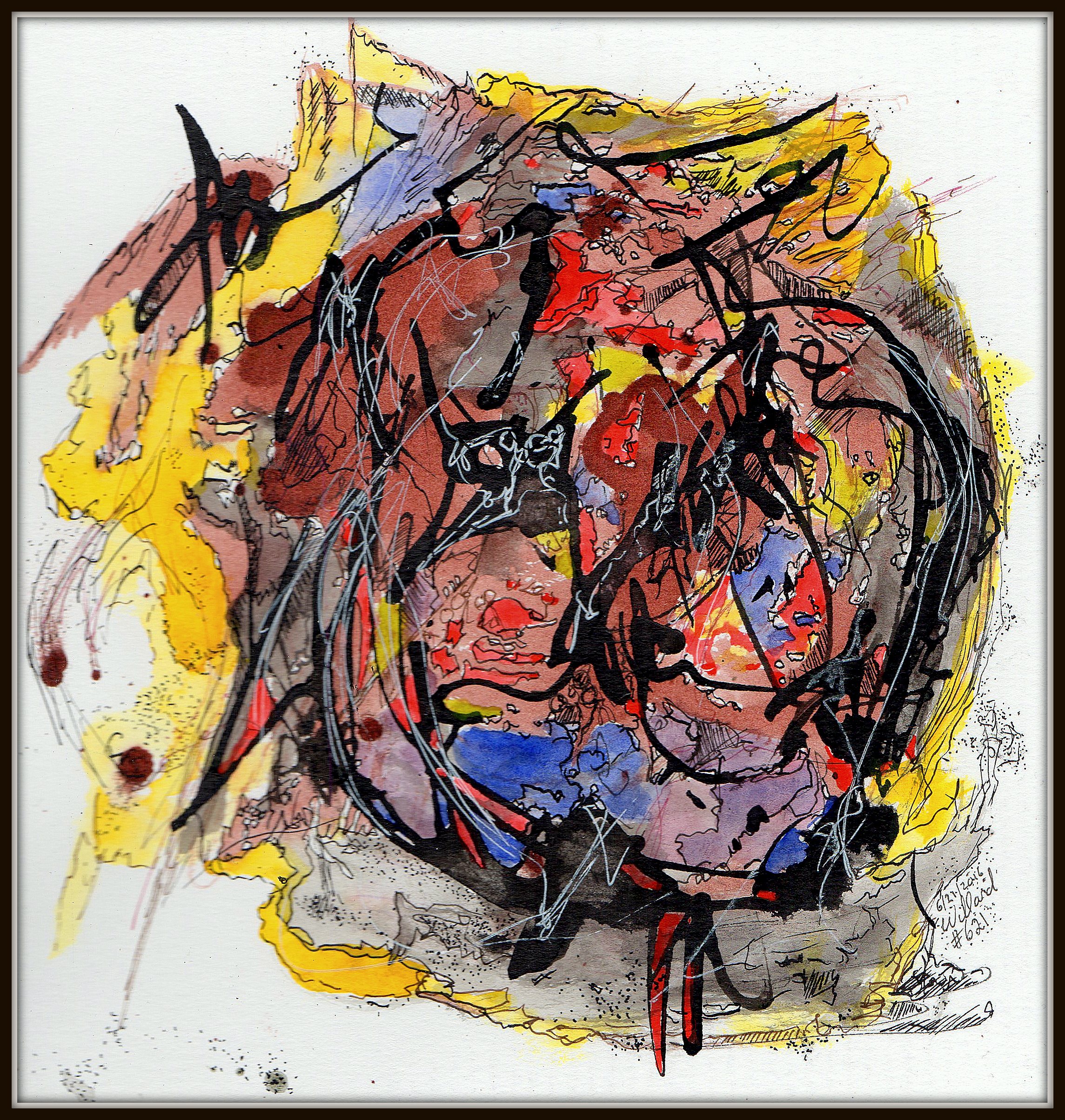 22″ x 20″ Black acrylic, white gouache, watercolor, pen and ink on 140 lb cold press Fabriano paper .